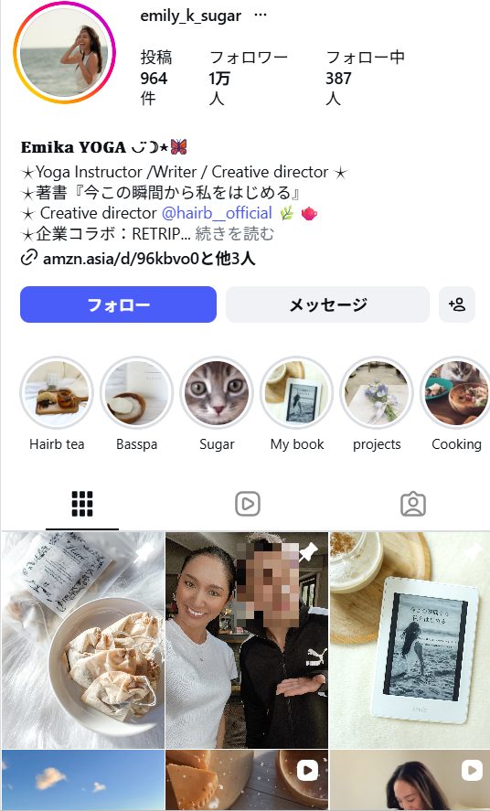 また、日常に取り入れやすい形で発信されているため、継続的な実践につながりやすい点も強みです。ウェルネス領域や美容、ライフスタイル商材との親和性が高いインフルエンサーと言えるでしょう。