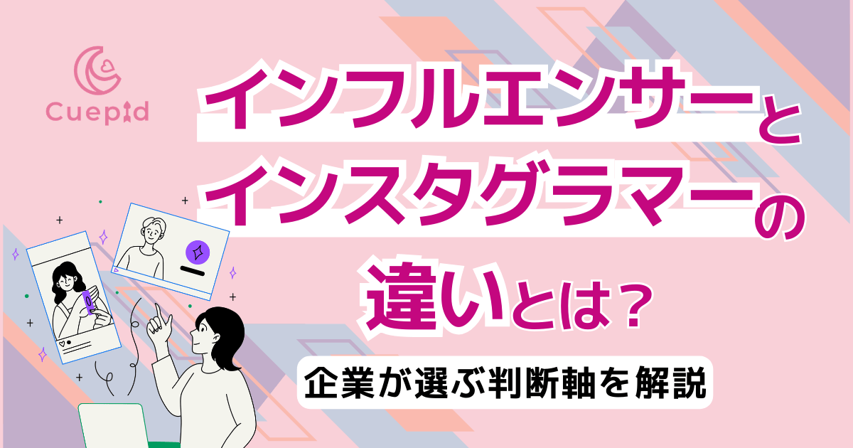 実は、この2つは似ているようで役割や得意分野に違いがあります。この記事では、インフルエンサーとインスタグラマーの違いを分かりやすく整理し、目的に応じた選び方や活用のポイントまで解説します。